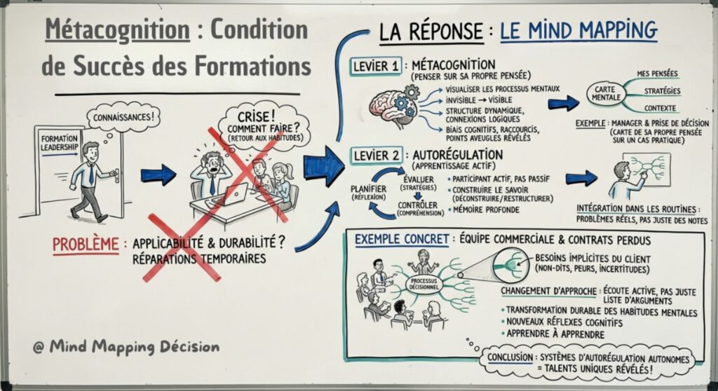 Récapitulons : le Mind Mapping active simultanément la visualisation et l’autorégulation métacognitives. Ces deux leviers transforment vos formations en véritables catalyseurs de développement durable.
