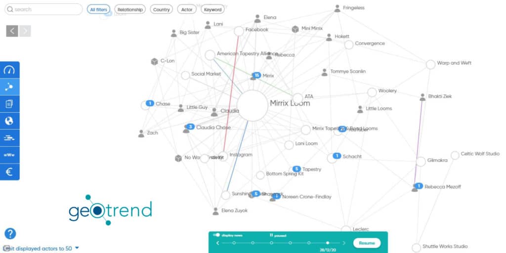 - Il propose d’accélérer la connaissance d’un marché avec ses acteurs clés, relations, contextes. C’est l’exemple d’exploration traité dans la vidéo.