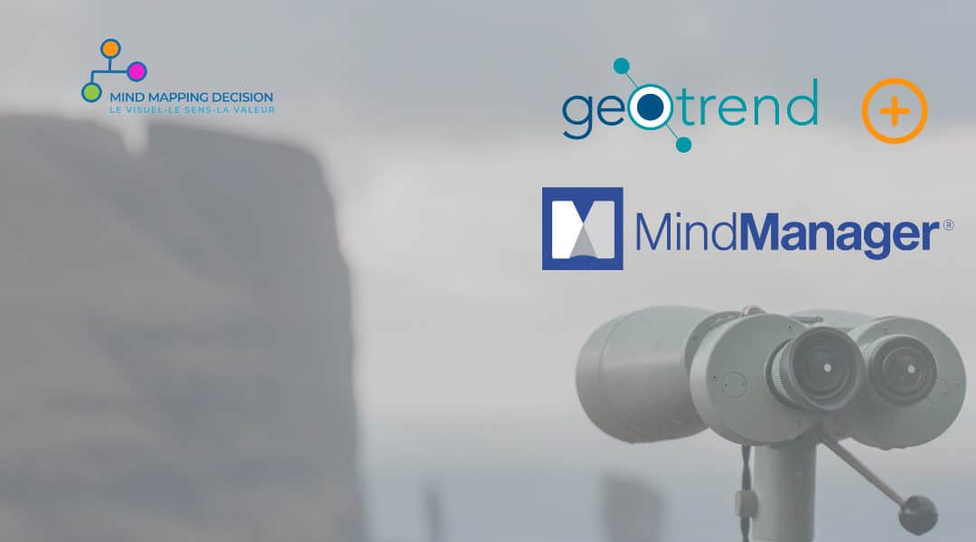 La cartographie de GeoTrend, sa datavisualisation, et les formes visuelles de MindManager (Cartes Mentales, Canevas, Process, Projet) donnent à voir. Cela libère une énergie et motivation puissantes dans les équipes.